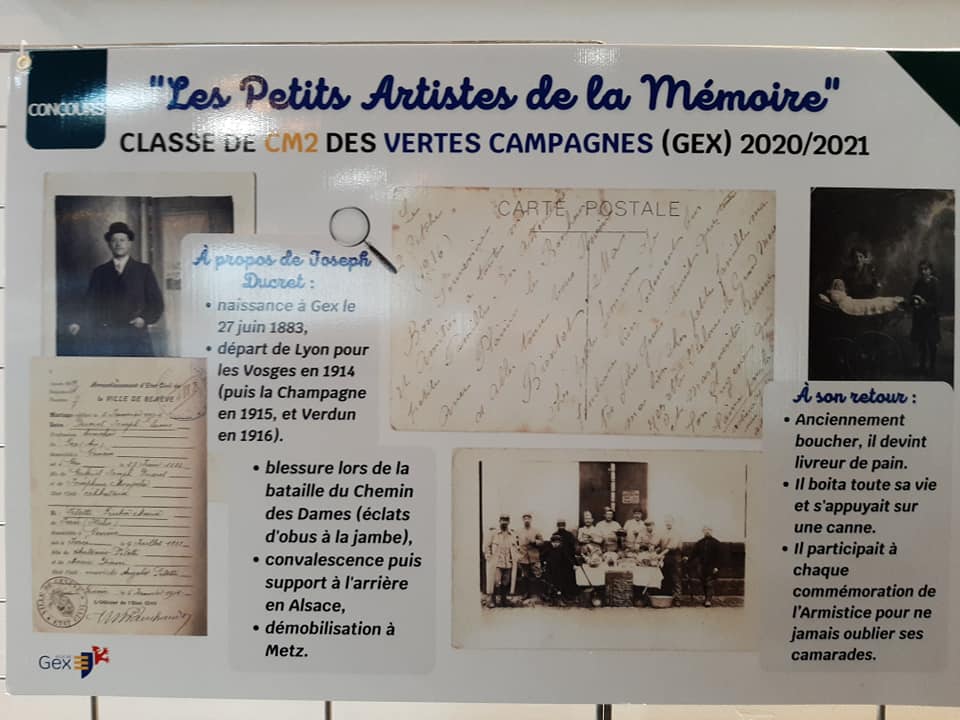 Le travail de réflexion demandait aux élèves de CM2 qu’ils sélectionnent un « Poilu », originaire de leur région, et qu’ils réussissent à retracer son parcours lors de la Grande Guerre. Ainsi, les enfants avaient pour objectif de réaliser une œuvre mémorielle, sous forme plastique ou numérique, mettant en lumière l’histoire du soldat. Ils ont sélectionné le soldat Joseph DUCRET.