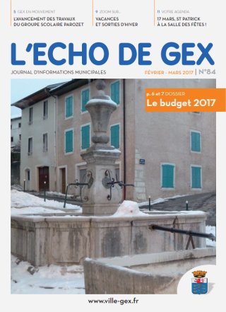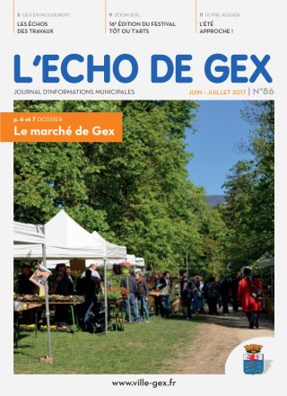 « L’ Écho de Gex » est un bimestriel présentant les échos du conseil, les projets et travaux, l’actualité des associations, les nouveaux commerçants ou artisans, l’agenda culturel et associatif, des renseignements pratiques et des informations relatives à la vie de la cité. Comme le prévoit la législation, une rubrique d’expression politique est réservée à l’opposition municipale.